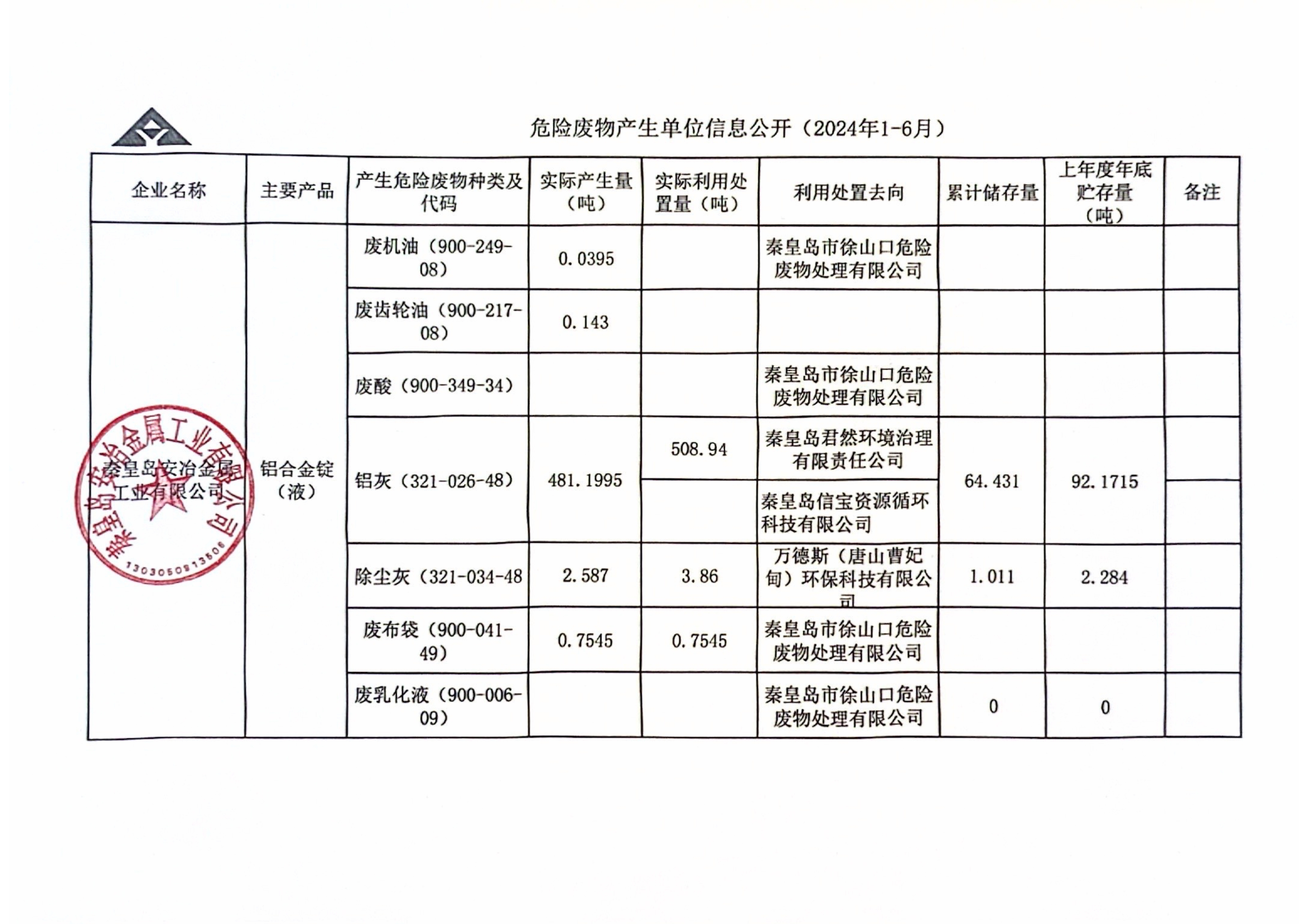 當前位置:首頁-資訊中心-危險廢物產(chǎn)生單位信息公開(2024年1-6月)